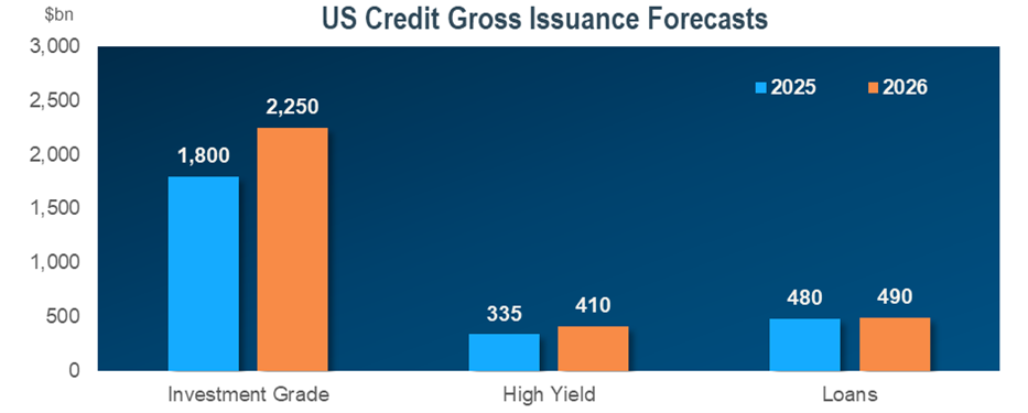 Chart Source: US credit gross issuance forecasts sourced from Morgan Stanley Research as of 11/21/25.