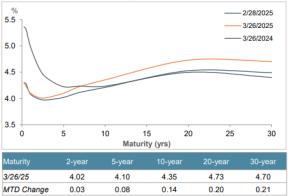 - The Treasury yield curve steepened, with the 30-year rate increasing